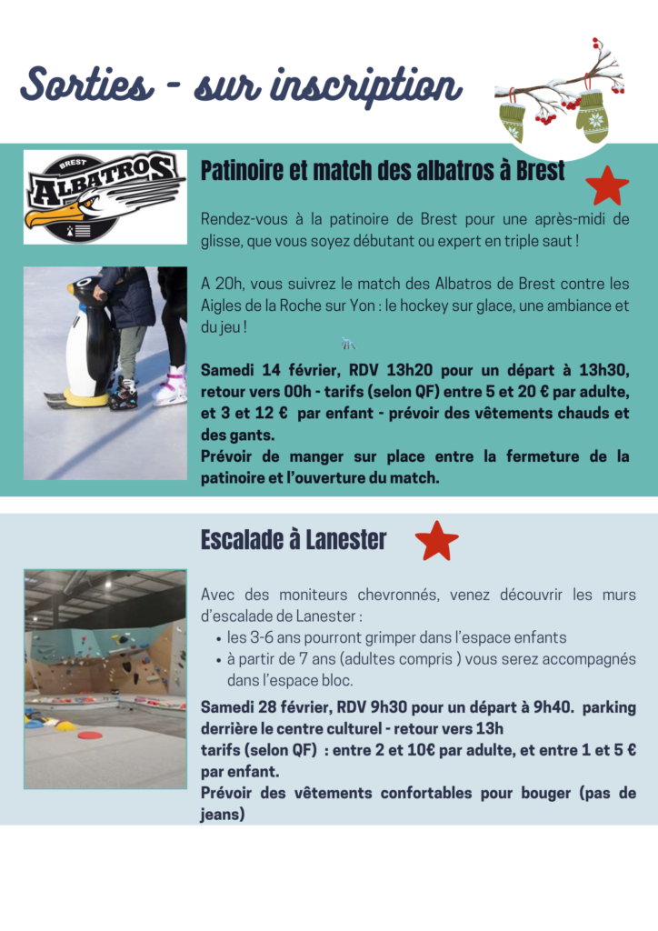 C’est bientôt les vacances, sportives pour février ! Attention ! Depuis quelques semaines, nous rencontrons des soucis de messagerie. Nous ne pouvons plus transmettre d’e-mails aux adhérente.s qui ont une adresse Orange, Wanadoo et la Poste. Nous faisons notre maximum pour que notre opérateur règle le problème au plus tôt.